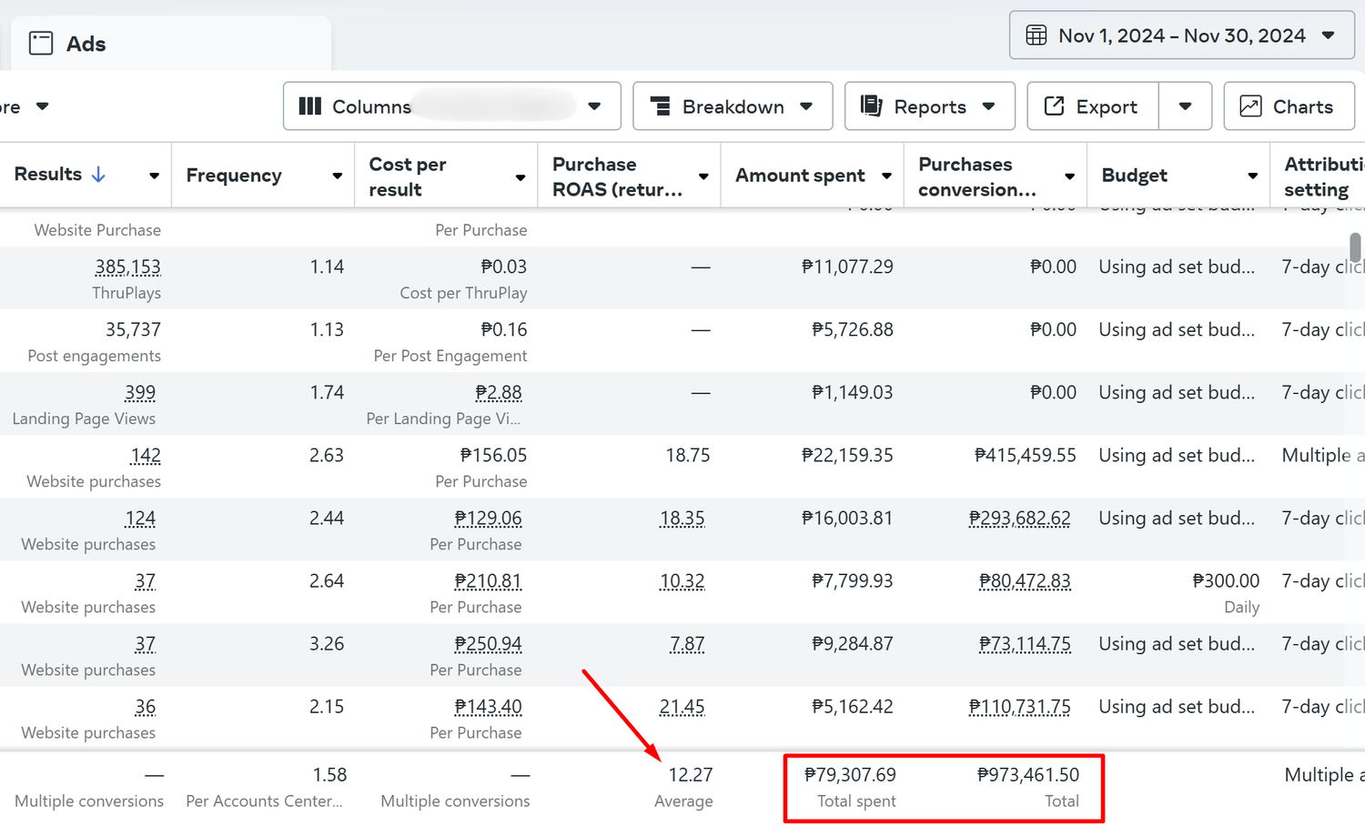 ₱79,000 ad spend, ₱973,000 in sales - 12.27 ROAS